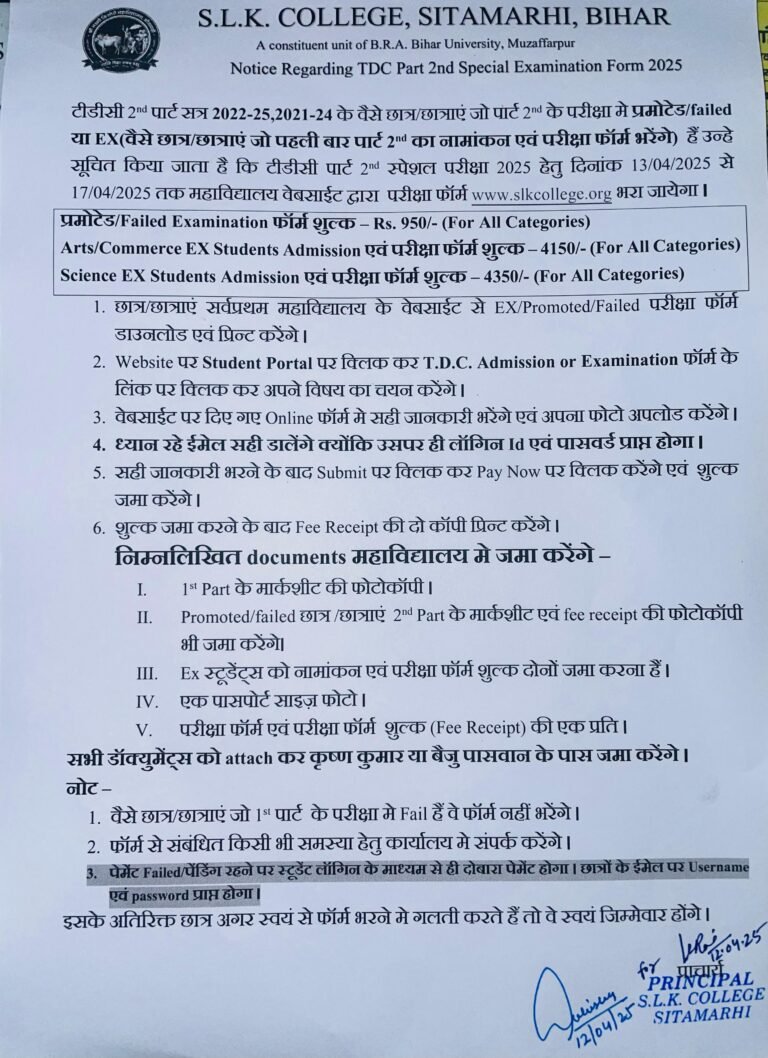 Notice Regarding TDC Part 2nd Special Examination Form 2025